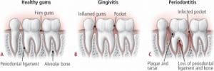 Periodontal disease is a chronic condition that affects more than 1/2 of the adult population. Periodontal disease occurs when plaque and bacteria accumulate and create an inflammatory response in the surrounding tissue. As a result you get pockets that develop between the gum tissue and the teeth. As these pockets become deeper, bone loss ensues.